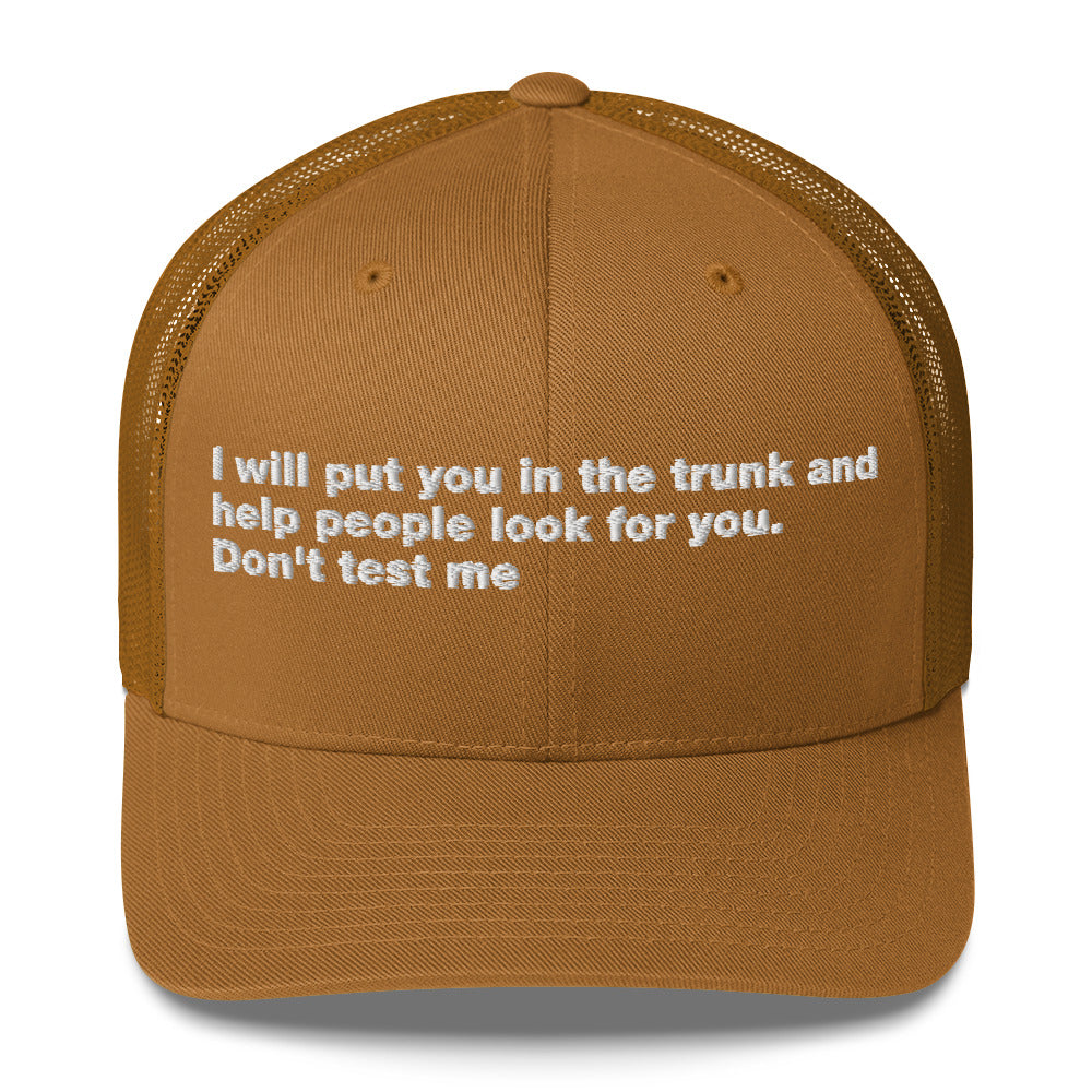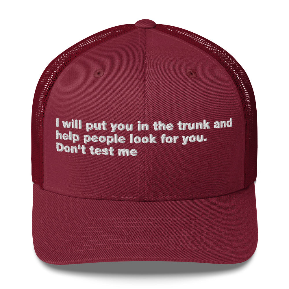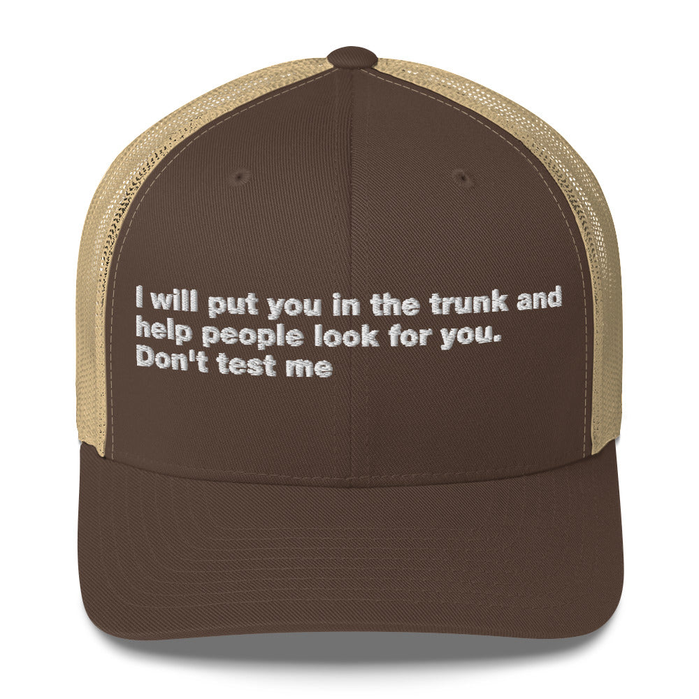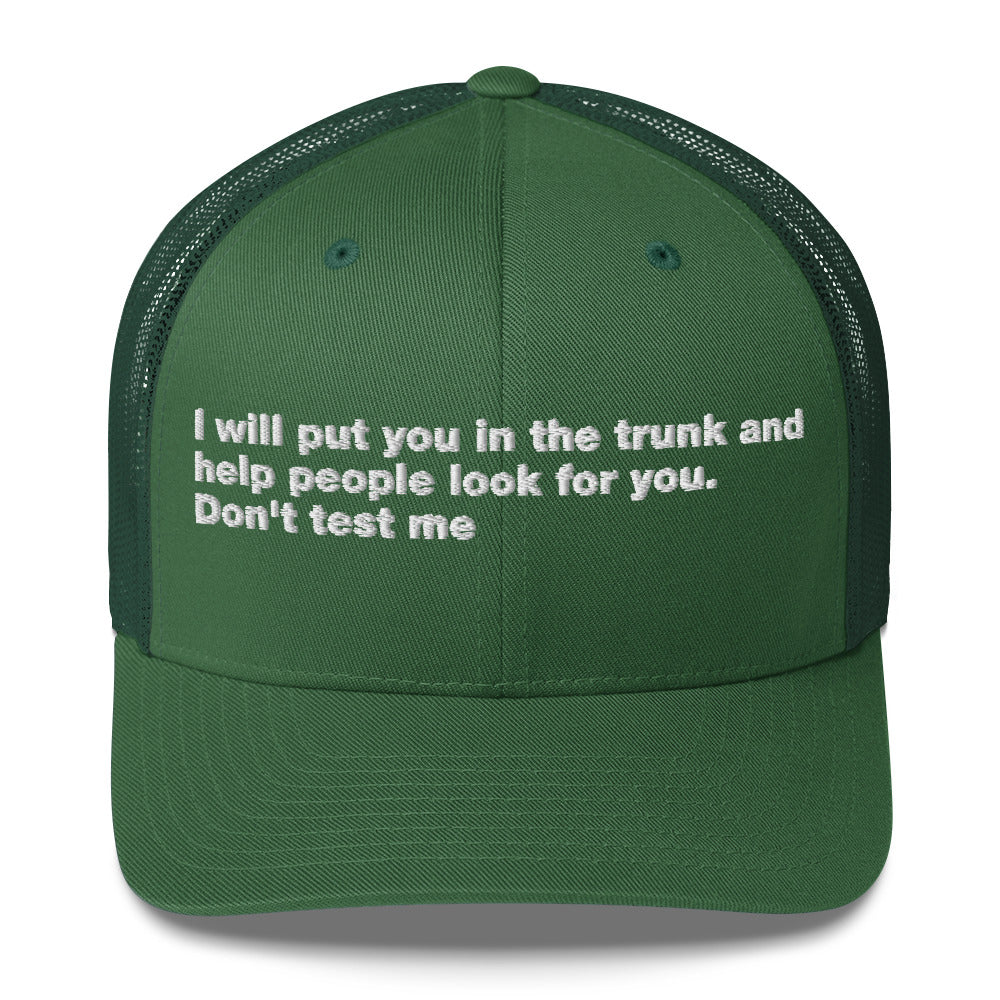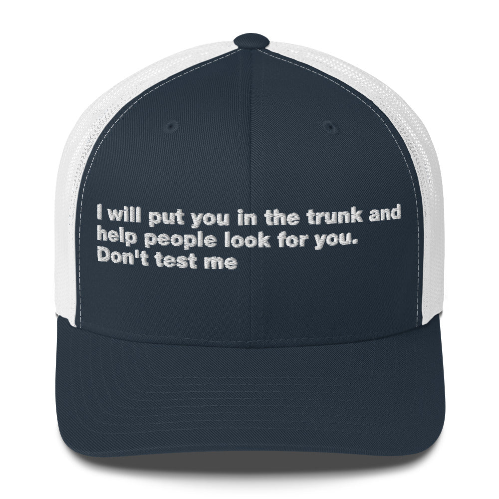 I will put you in the trunk and help people look for you. Don't test me - Trucker Cap