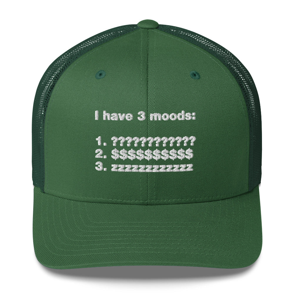 I have 3 moods: ????? $$$$$ zzzzz - Trucker Cap