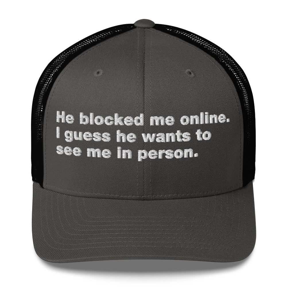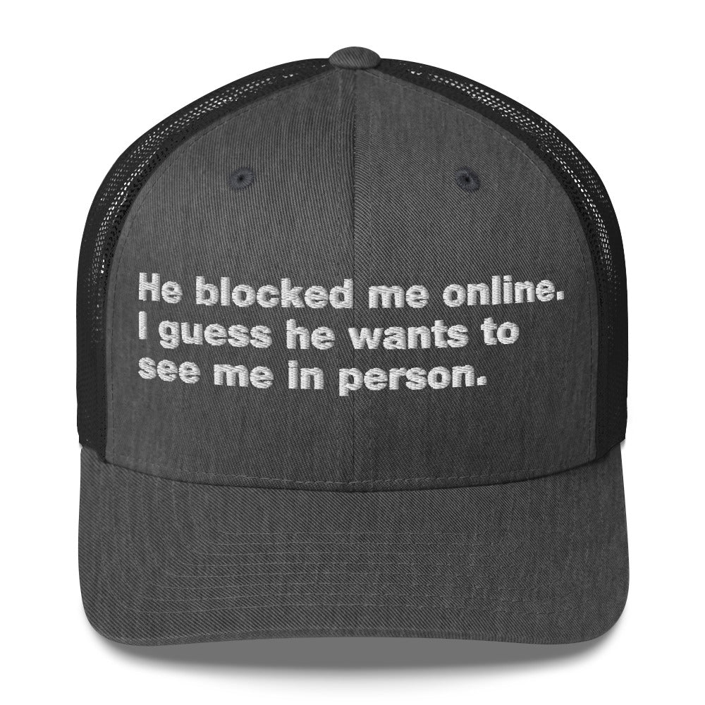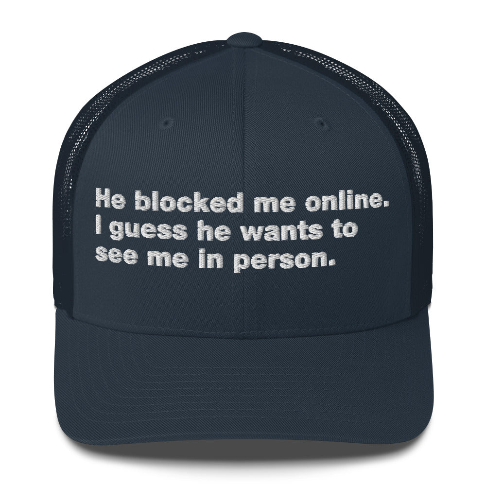 He blocked me online. I guess he wants to see me in person - Trucker Cap