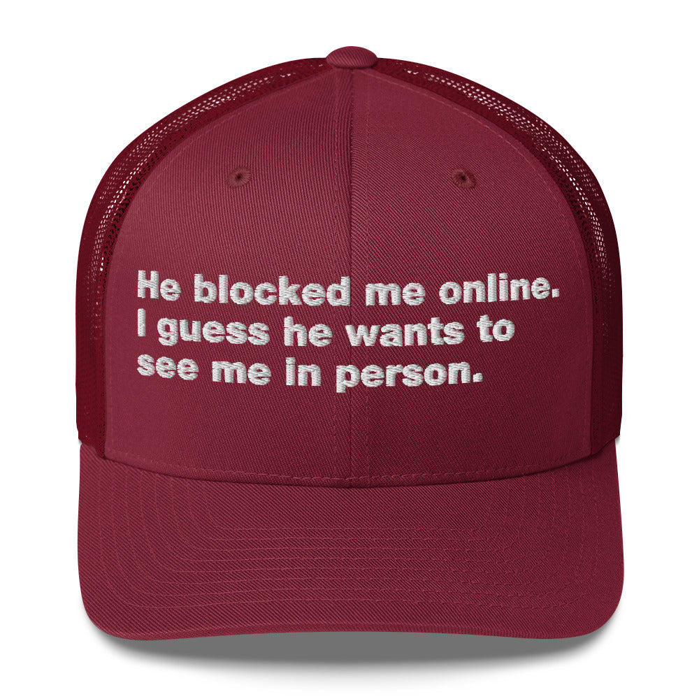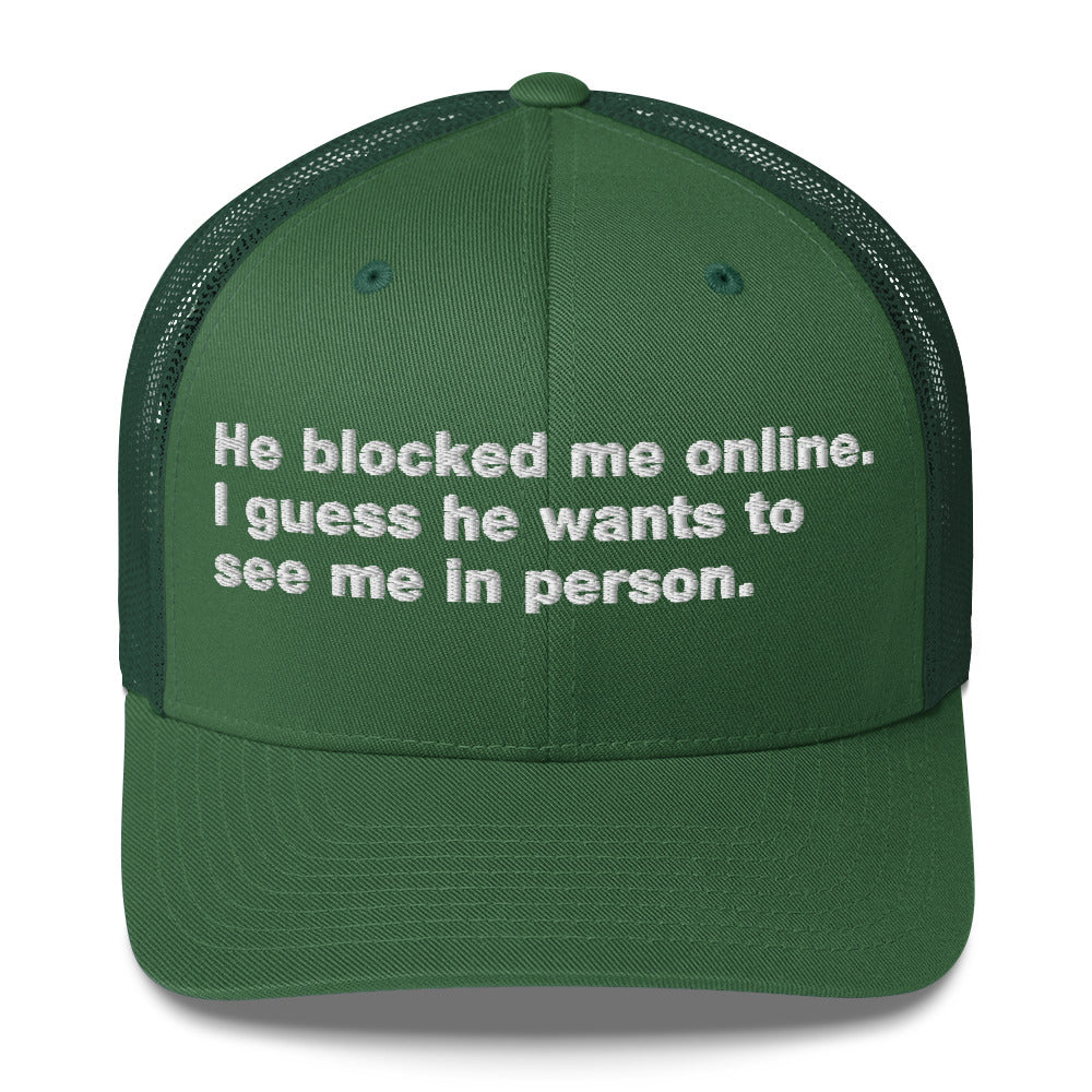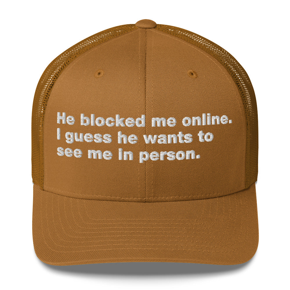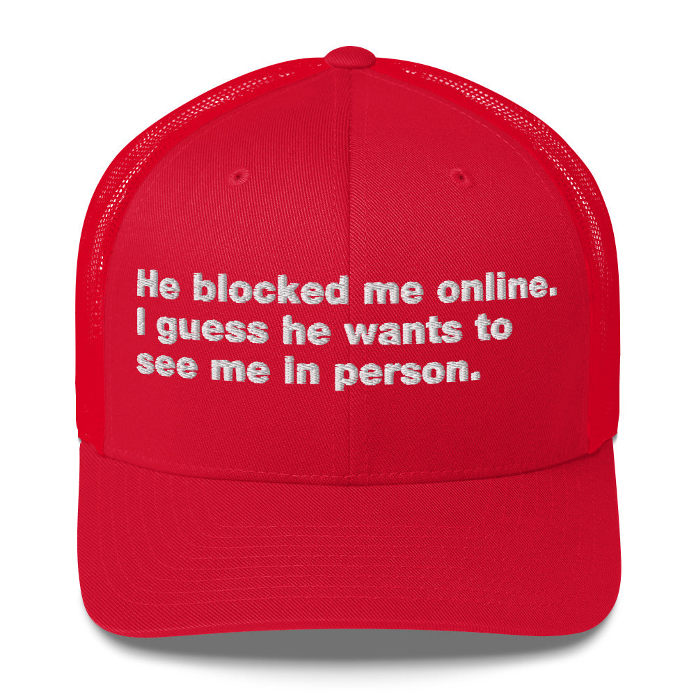 He blocked me online. I guess he wants to see me in person - Trucker Cap