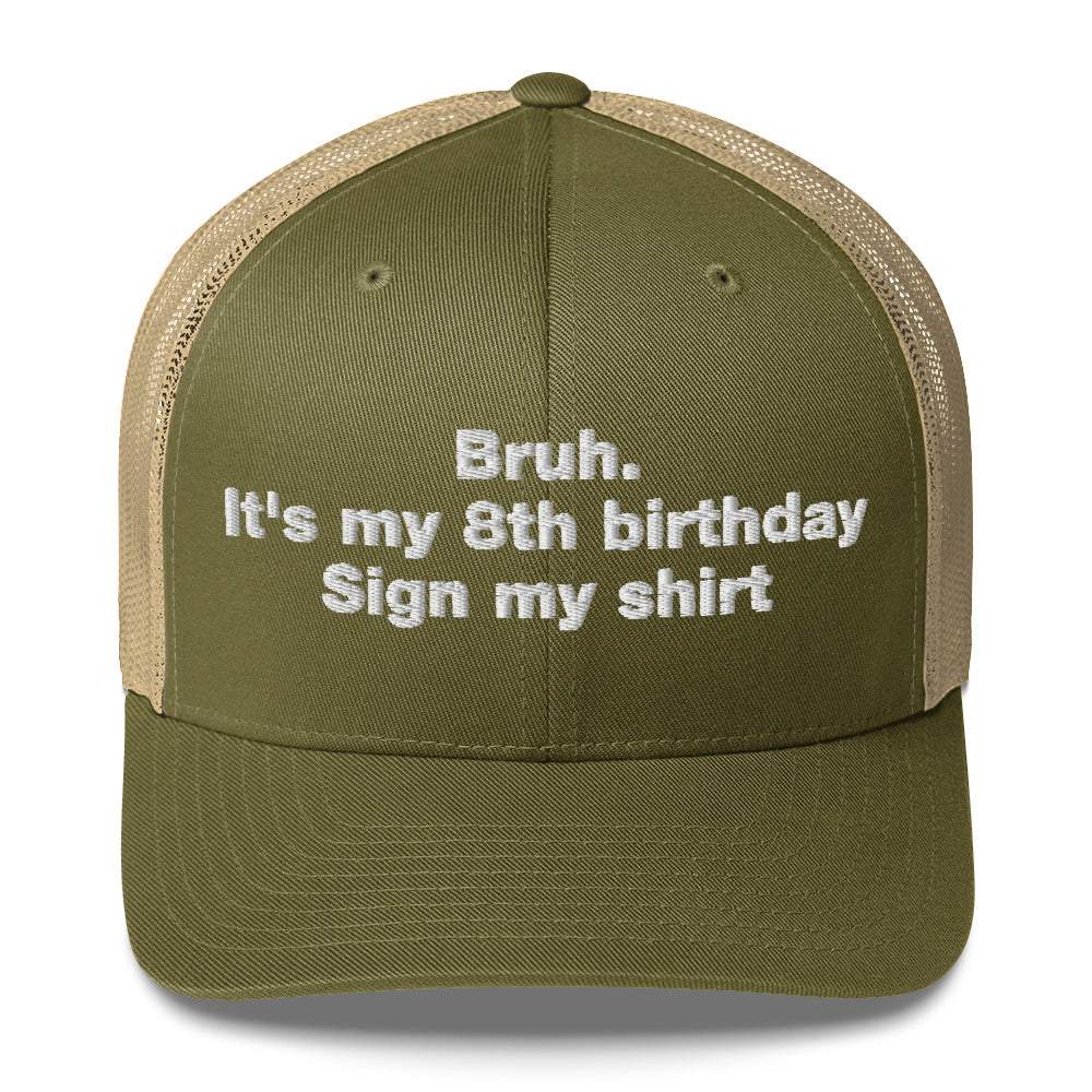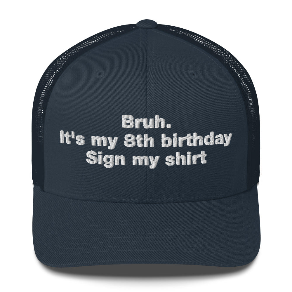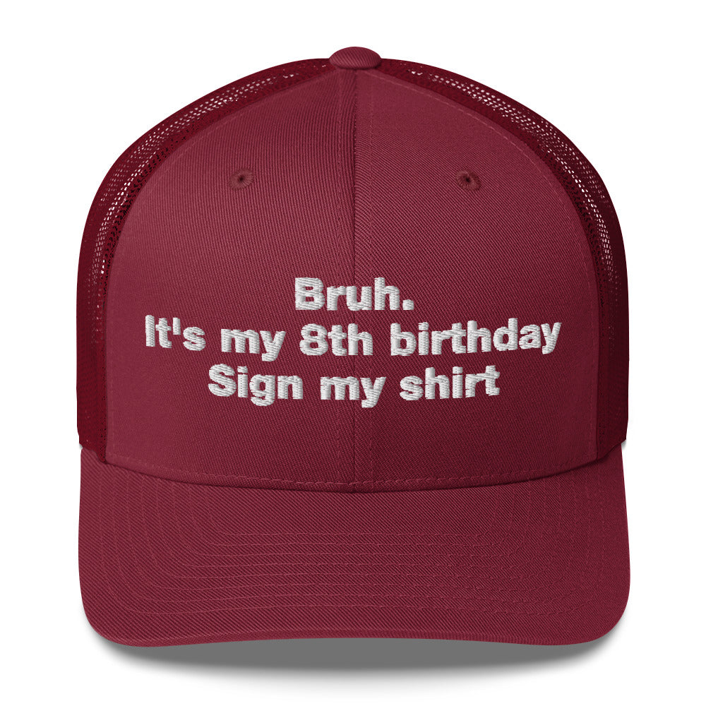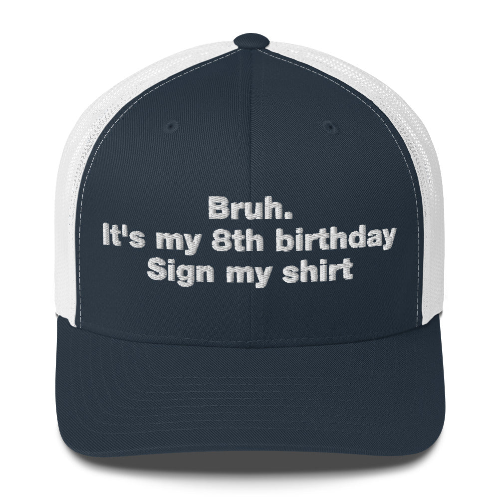 Bruh It's my 8th birthday Sign my shirt - Trucker Cap