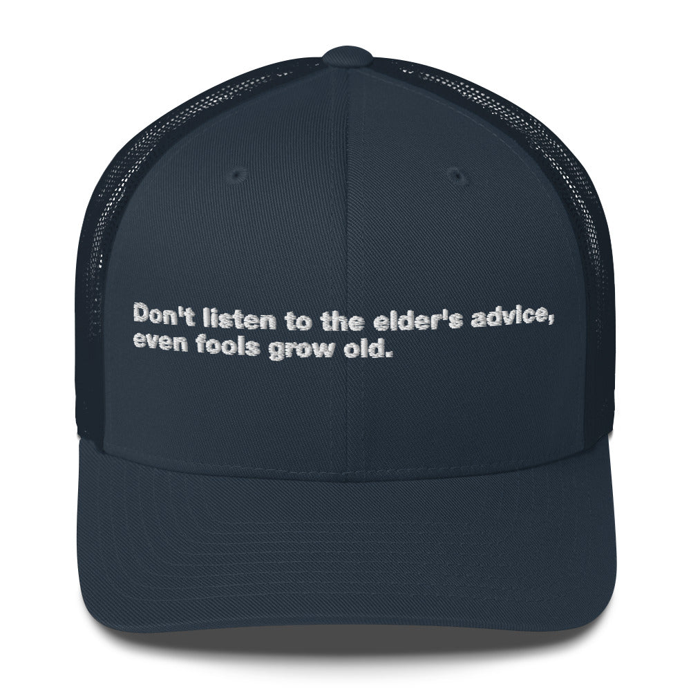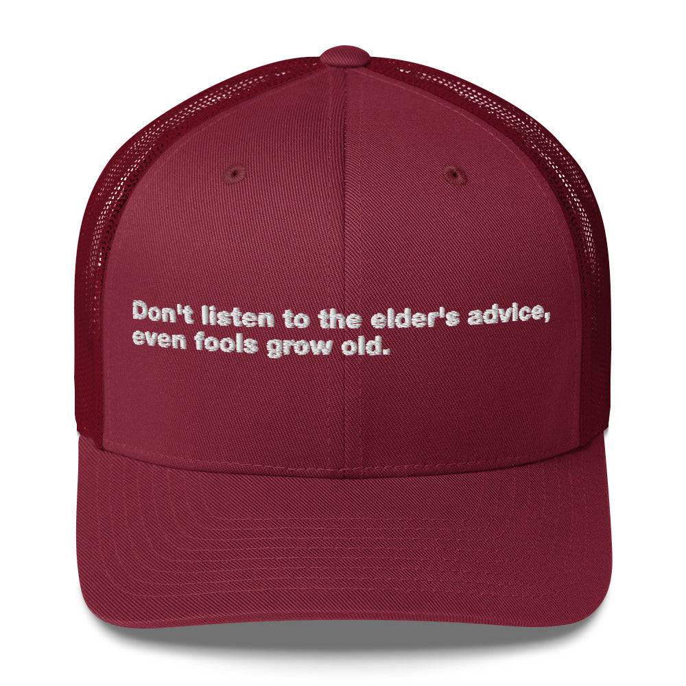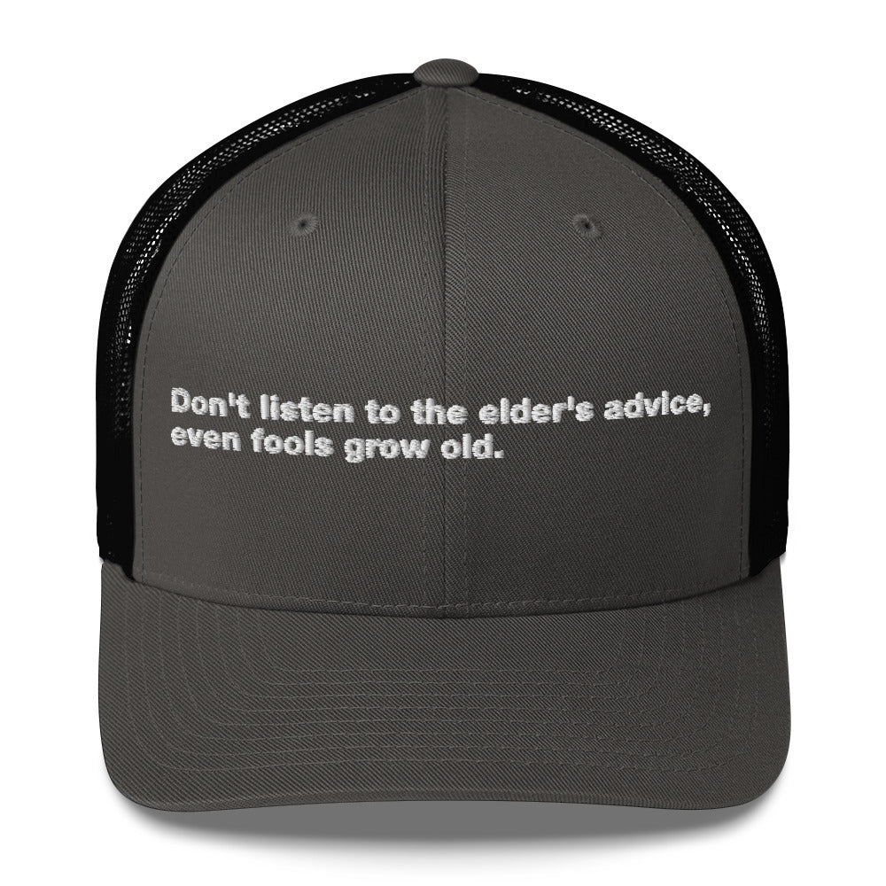 Don't listen to the elder's advice, even fools grow old. - Trucker Cap