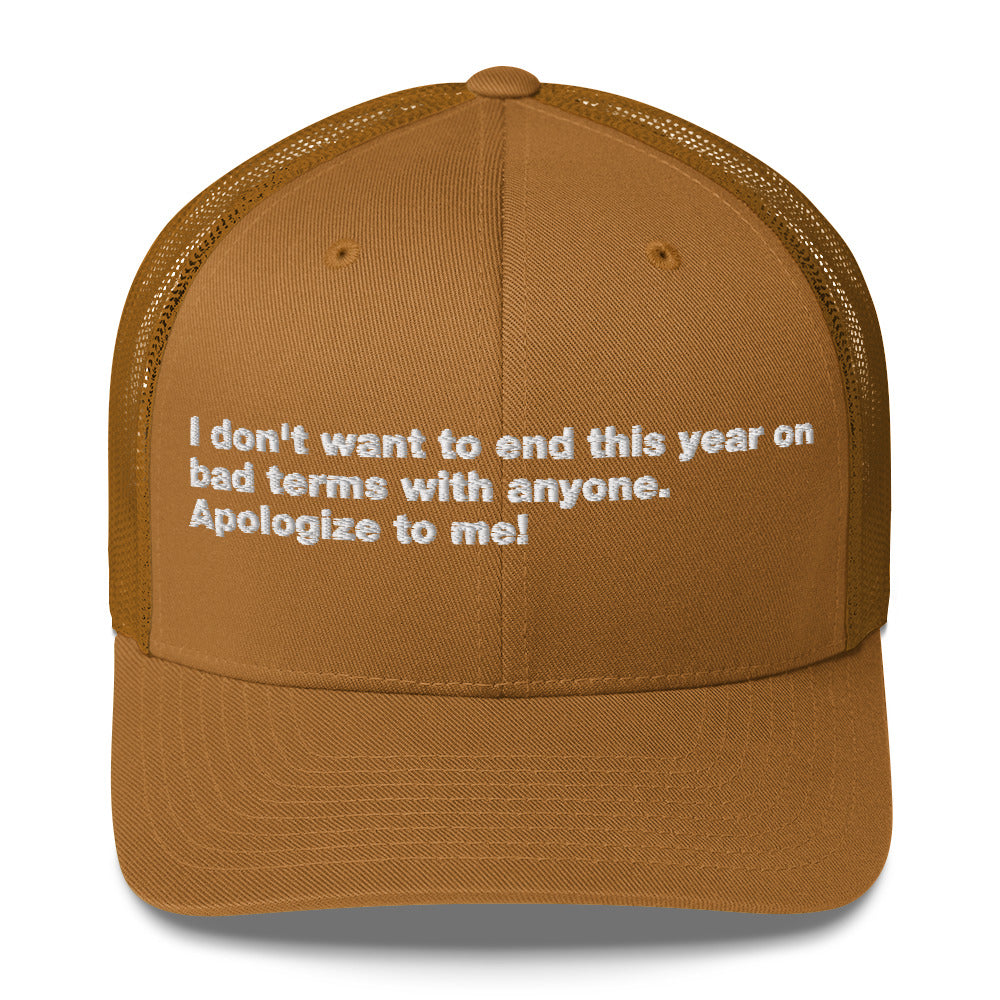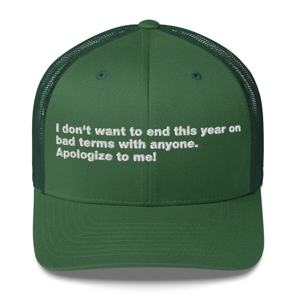 I don't want to end this year on bad terms with anyone. Apologize to me! - Trucker Cap